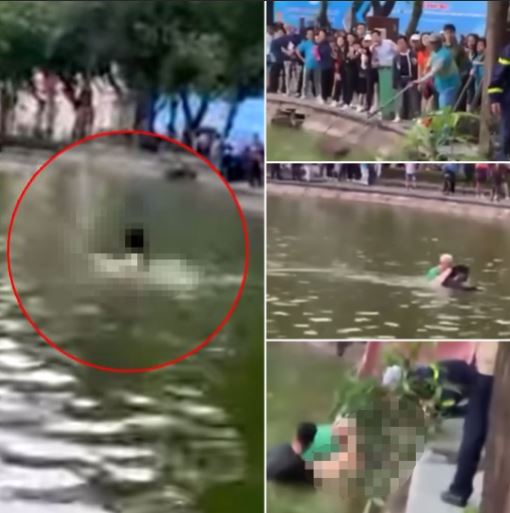 Sau đó, Đội viên Đội An ninh trật tự thuộc Ban quản lý hồ Hoàn Kiếm và phố cổ Hà Nội đã cùng với một người đàn ông ngoại quốc bơi ra để cứu người phụ nữ trên, đưa vào bờ.