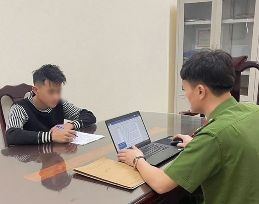 Cán bộ công an đang lấy lời khai của B.T.L. (Ảnh: Công an Thanh Hoá)